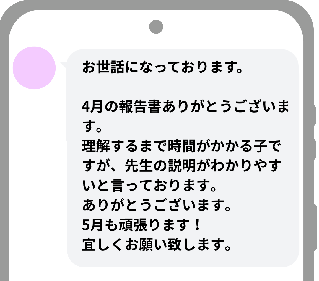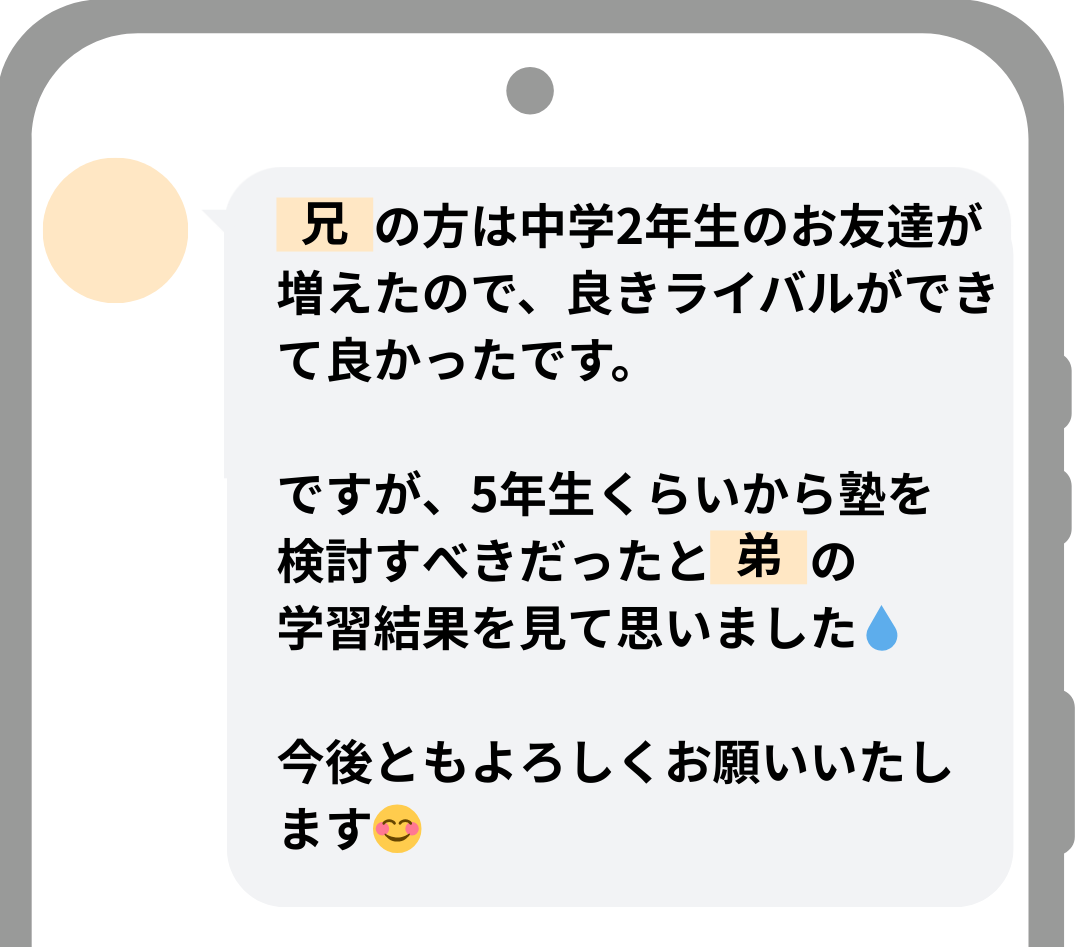 体験授業を終え、数ヶ月が経った保護者様から寄せられた感想です!